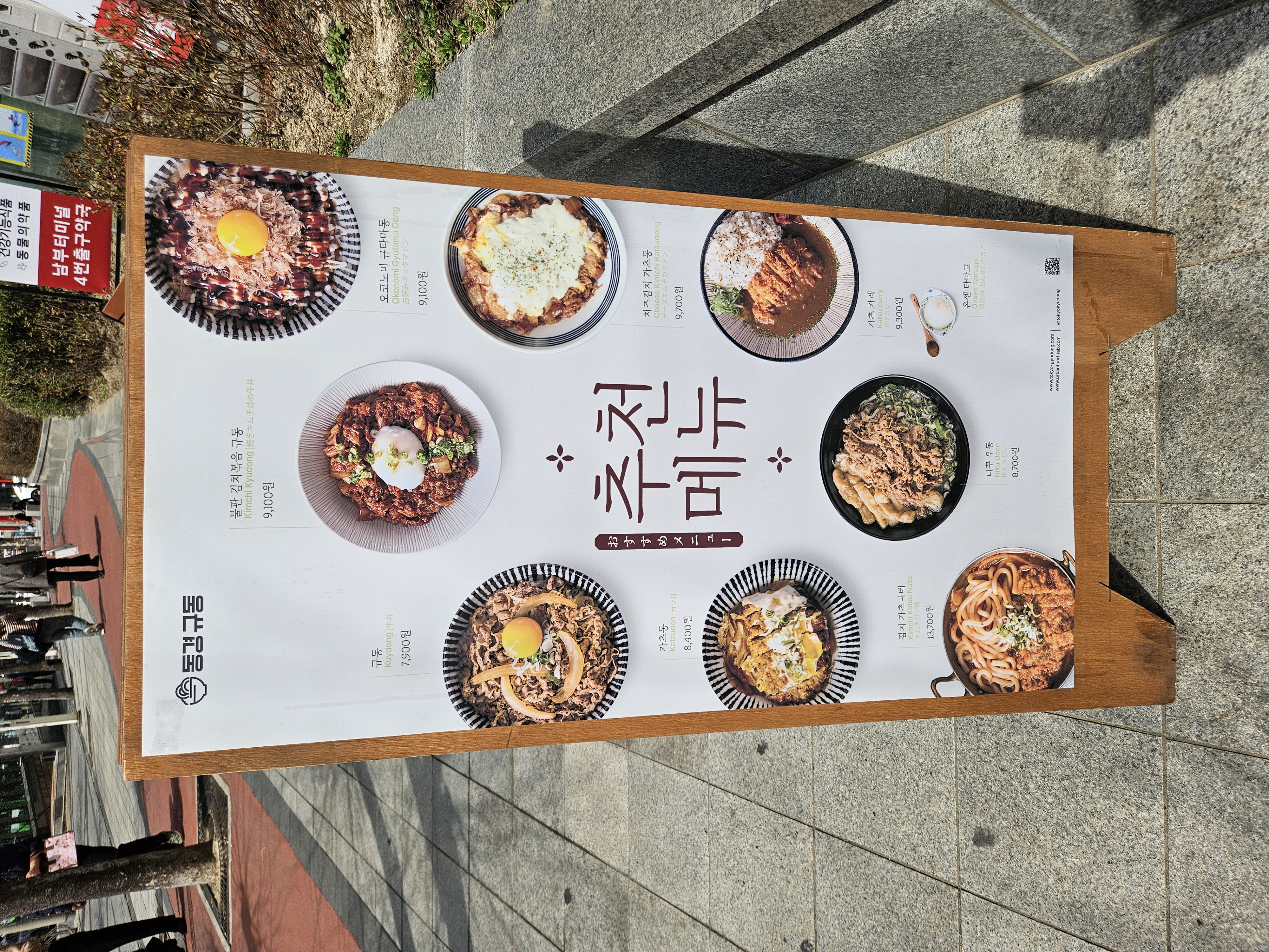 가게 앞 입간판을 보면 인기 추천 메뉴들이 눈에 띕니다.