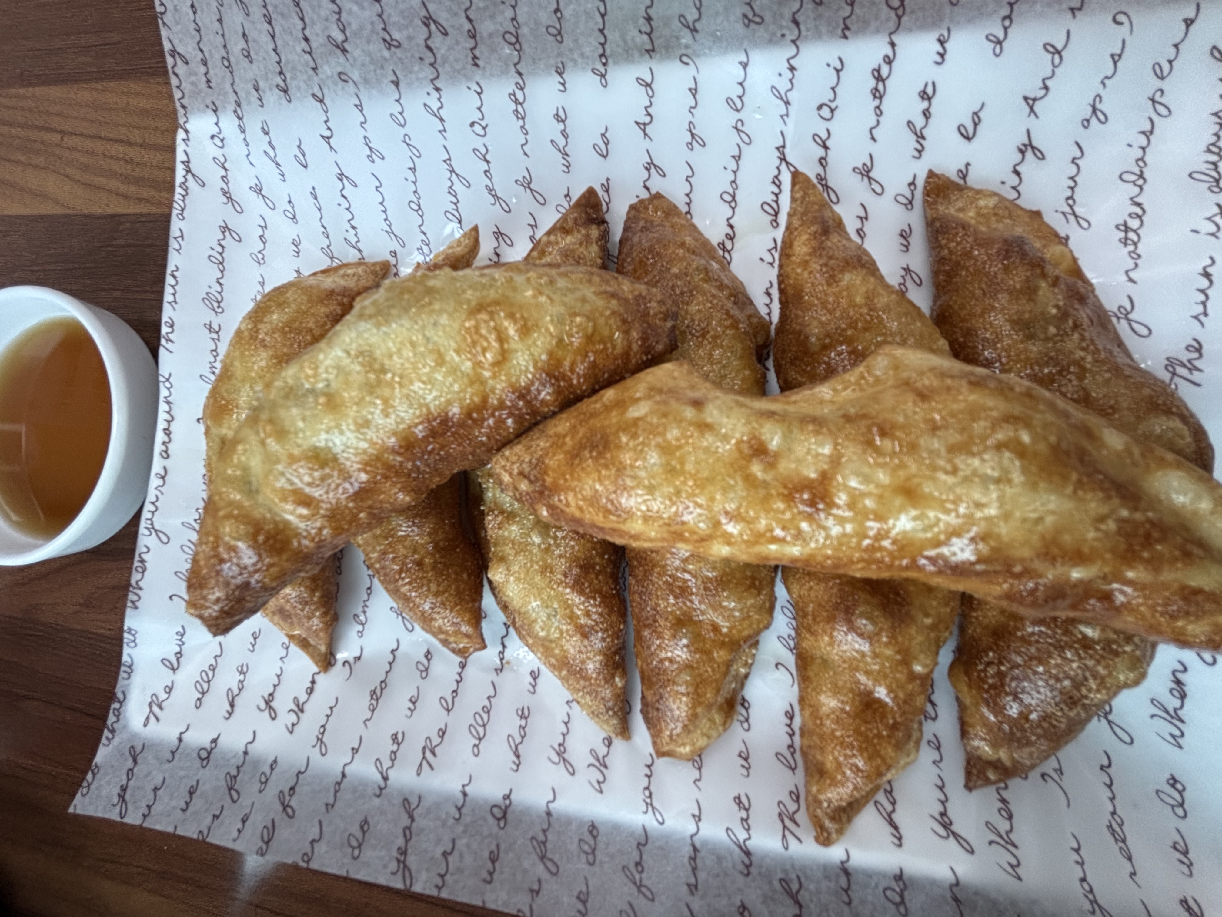 겉은 바삭하고 속은 촉촉한 군만두! 겉면을 철판에 지져낸 듯 아주 노릇노릇해서 비주얼부터 군침 도는 비주얼이었어요. 만두소도 꽉 차 있어서 만족감 100%.